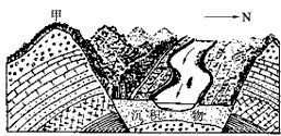 4、单选题 下面是“某地区地质构造剖面及地面景观示意图”,读图回答1—2题。