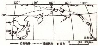 2、单选题 白令海峡是亚欧大陆与北美大陆相距最近处,如果在这里修建一条铁路同原有铁