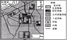 2、单选题 图为我国某城市用地情况图。读图回答下列各题。