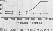 1.2001 - 2007年江苏人口2.导致图中江苏人口增长总量变化的主要原因是地区间