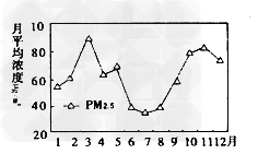 4、单选题 下图是我国东部某地的PM2.5月平均浓度图,关于夏季浓度特点原因的说法错误的是