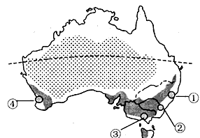3、单选题 读澳大利亚荒漠带、农业区及主要城市分布图,并结合下图回答1—4题。