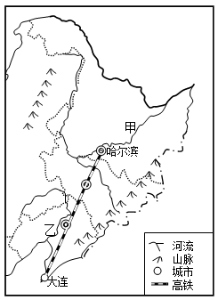 4、单选题 2012年12月1日,哈大高铁正式开通营运。它是我国在高寒地区修建的首条、也是世界上第一条新建高寒高速铁路,设计时速350公里每小时,沿途经过10个城市。其设计施工难度巨大,沿线冬季极端最低温度零下40℃左右,最大积雪厚度30厘米,沿线土壤最大冻结深度达205厘米,下图是哈大高速铁路示意图。读图回答下列问题。