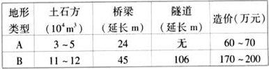 3、综合题 ? 下表为山区和平原地区修筑同等级铁路每百米工程量和造价的比较表(20世纪80年代),读后分析回答问题。