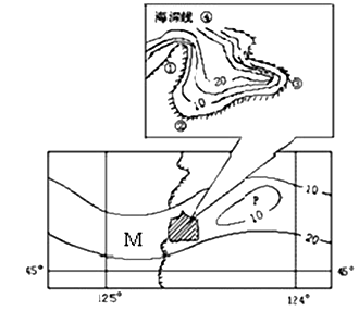 【小题2】从图中信息可议判知,③处的海深线最密集,海水深度大,海岸坡度大,适宜建设港口码头,适宜大型船只出入。故选C。