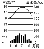 4、综合题 分析某地降水、气温分布图,回答下列问题:(每空2分,共10分)