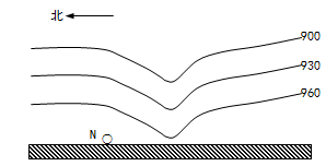 3、单选题 下图是夏季某时段近地面等压面(单位:hpa)垂直分布示意图,N市日出时间7:20,日落时间21:00(北京时间)。完成下列各题。