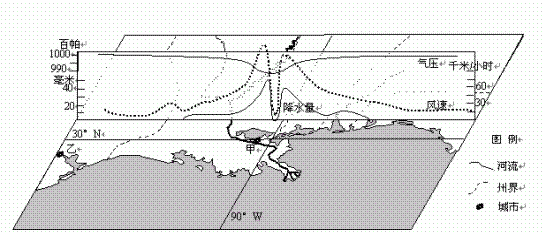 (3)依据所提供的气象资料及甲、乙城市空间位置,分别说明在天气系统过境时甲、乙两城市的天气特点。