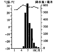 2、综合题 (10分)下图是某地的气候资料,读后完成下列问题。