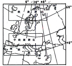 近年来,中国赴外游客数量急剧增长。2012年春节期间赴欧洲的中国游客在奢侈品上共花费72亿美元,占春节期间整个欧洲奢侈品销售总额的62%。欧洲拥有丰富的旅游资源,是世界上最活跃的旅游地区之一,按自然旅游风光大致可分为三大旅游区,即北欧、中欧和南欧旅游区。读下图,回答问题: