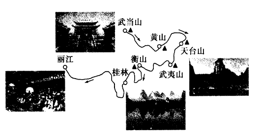 (1)该考察路线所经过的名山中,有两个被列入“世界自然与文化遗产”,一个是黄山,另一个是____