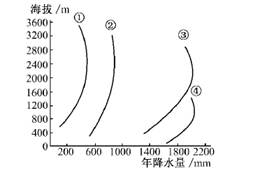2.温带荒漠的降水量应该小于250mm所以①代表温带荒漠,亚热带常绿阔叶林的降水在800-1500mm之间,所以③代表亚热带常绿阔叶林。