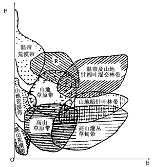1、单选题 下图为青藏高原及我国温带若干自然带的关系图式。读图回答(1)—(2)题。
