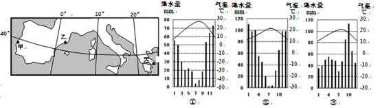 1、单选题 读南欧局部示意图及甲、乙、丙三城市气温、降水量图。回答小题。