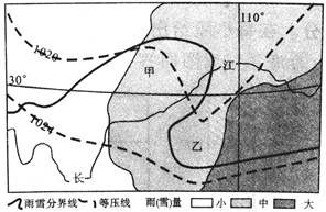 【小题1】导致图中雨雪分界线在甲、乙两处发生变曲的主要因素是