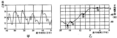 3、单选题 ? “仙女木”是寒冷气候的标志植物,因此用来命名出现在北欧的寒冷事件,“新仙女木”表示末次冰期的最后一次寒冷事件。“新仙女木”事件之后气候变暖,进入温暖的全新时期。图甲是地球50万年前至今的气温变化模拟曲线图,图乙是地球2万年前至今的海平面模拟变化图,回1—2题。