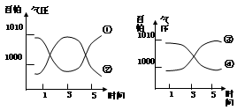 小题3:台风中心为低压,过境时气压低,过境前和过境后气压高。所以本题选择A选项。