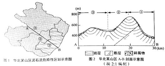 (2)判断图中1、2、3所示区域,哪一个是泥石流高危区,并说明理由。(6分)