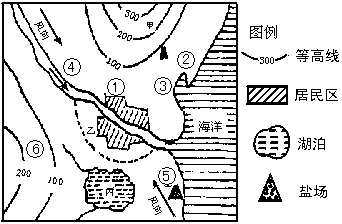 (2)计划在①—⑥处,分别建化肥厂、制碱厂、罐头加工厂、石油输出港、自来水厂、疗养院,分别应建在何处较为合理,试述理由。