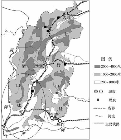 2、综合题 2012年5月14日,国家批准设立豫晋陕黄河金三角承接产业转移示范区,晋西南是该示范区的重要组成部分。下图为山西省简图(圆圈内为晋西南地区)。阅读图表资料,回答下列问题。(14分)