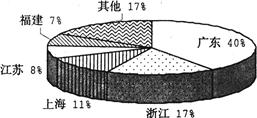 4、单选题 下图是2009年我国家具行业出口构成图,读图回答7~8题。