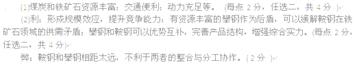 (1)结合材料分析鞍钢和攀钢共同的优势区位条件。( 4分)