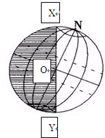 2.由右图可知,Y地所在经度为东经30度,可以推知O点为西经60度,则赤道上,西半球处于昼半球的经度范围为西经60度到西经20度。