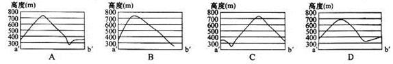 小题2:表示沿图中a—b剖面线绘制的地形剖面图是