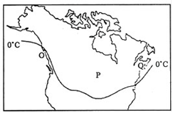 3、单选题 读北美0℃等温线分布图,回答问题。