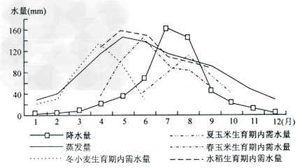 1、单选题 读我国某地多年月平均降水量、蒸发量与各作物生育期内平均需水量关系图,回答1—2题。?