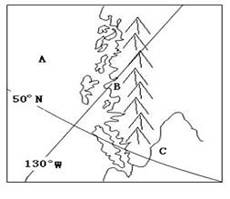 【小题2】B地位于北纬40度至60度大陆西岸,盛行西风的迎风坡,为温带海洋性气候区。主要是受西风的影响。