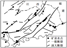 小题1:关于图示区域矿泉水点空间分布特征的描述,正确的是