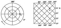1.读下面两幅经纬网示意图,a点在b点的?方向。2.一架飞机从a地飞到b地,飞行最短方向是