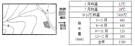 2、单选题 图为我国东部某地的等高线示意图和该地区的气候资料表,图中等高线所示高度分别为100m、200m、300m、400m。综合分析后,完成下题。