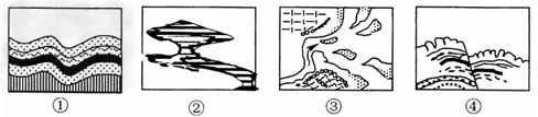 3、单选题 下列各图所示意的地质构造或地貌景观中,主要由于外力作用形成的是