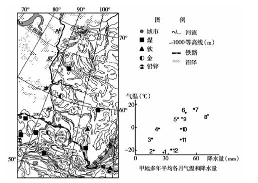 (3) (8分)有色金属矿产资源丰富,有铅锌矿、金矿等(2分);煤炭资源丰富(2分);国外市场需求量大(2分);铁路交通便利(2分)。