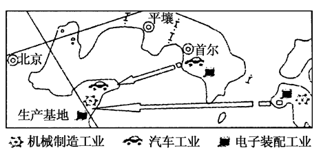 4、单选题 下图为“20世纪80年代以来世界某区域加工制造业重心转移示意图”。我国吸引日本、韩国制造业迁入的主要原因是( )