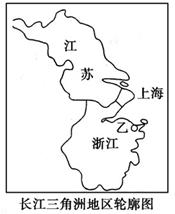 5、综合题 (10分) 继珠江三角洲后,2010年5月24日,国务院正式批准实施《长江三角洲地区区域规划》,旨在贯彻落实《国务院关于进一步推进长江三角洲地区改革开放和经济社会发展的指导意见》,进一步提升长三角整体实力和国际竞争力。长江三角洲地区包括上海市、江苏省和浙江省,区域面积21.07万平方千米。结合该图,回答下列问题。