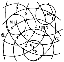 (2)某企业生产必需的两种原料分别来源于M1、M2,N是该企业的唯一市场,以M1,M2为圆心的同
