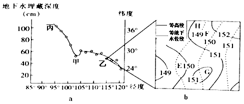 3、单选题 下图图a是台湾-福建-湖南-四川-青海一线的地下水埋藏深度图,右图b是图a中乙地的相关信息。读图回答下列各题。
