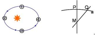 1.若Q点为晨点,P点的纬度71度。那么地球在公转轨道上的位置最接近下图中的2.若P点位于东经30度,且与Q点位于同一经线上大部分地方气温达到一天中的最高值时,由此时的北京时间为3.关于P、Q两点的说法正确的是