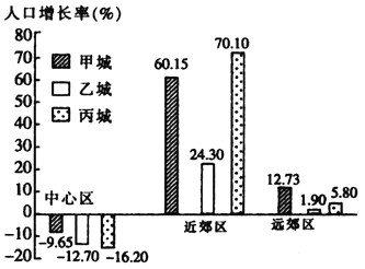 1、甲、乙、丙三个城市近郊人口增长迅速的主要原因是: