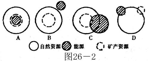 5、单选题 图26-2中,能正确表示自然资源、矿产资源和能源三者之间的关系的是