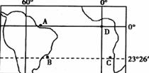 4、单选题 读图,某海轮由A点出发,经B、C、D三处后返回原地。沿途经历的地理现象可信的是