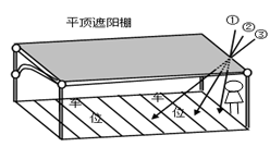 【小题1】正午太阳高度角越大,阳光照射进室内的面积越小;正午太阳高度角越小,阳光照射进室内的面积约大;冬至日,太阳直射南回归线,北京正午太阳高度角最小,阳光照射进室内面积最大,读图可知,图中③照射进室内面积最大,故③表示冬至日。
