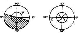 【小题1】左图中阴影部分表示东半球,其与西半球的分界线为20°W和160°E,根据0°和180°经线的位置可以判断出图中左侧分界线为20°W,右侧分界线为160°E,说明地球自转方向为逆时针,为北极俯视图,则甲地的地理坐标是(45°N,135°W);右图中极地东风带方向为顺时针,说明是北半球俯视图,则乙地的地理坐标是(30°N,180°)。根据两地地理坐标可判断出甲地位于乙地的东北方向。