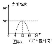 4、单选题 读“某地某日太阳高度日变化图”(图甲),且这一天过后,北极圈内极昼范围正在扩大。读图完成下列各题。