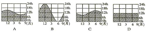 小题2:下图 “4幅昼夜长短的季节变化示意图”中(阴影部分为黑夜),表示乙地的是