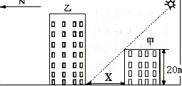 5、单选题 读图,甲楼房位于北纬21034’,欲在乙处建一新楼,为保证乙楼房全年采光充分,甲、乙楼距x最少应是