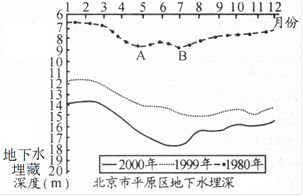 1、单选题  读北京市平原地下水埋藏深度变化图(下图),回答29~31题。